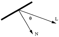 Dull, matte surfaces, such as chalk, exhibit diffuse reflection, which is also known as Lambertian reflection. Such surfaces appear equally bright from all viewing angles because they reflect light with equal intensity in all directions. The resulting intensity due to diffuse Reflection is given by \(I = K_dI_pcos\theta\) where \(I_p\) is the intensity of the point light source. \(K_d\) is the coefficient of diffuse reflection, which is a constant for a specific material and ranges in the interval \([0, 1]\) and \(\theta\), angle of incidence is the angle measured between between the direction from p to the point light source and the normal to the surface