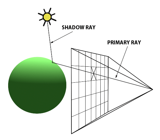 If the point indeed lies on the object, then we shoot another ray from the point to the light source. If this ray intersects any of other objects in the scene, it means that light is obstructed from reaching that point. So, it becomes a shadow(only ambient light is present). Otherwise, we use the illumination model to find the intensity of light at that point.