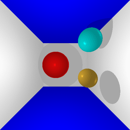 Output: The scene as seen from the camera in a \(500\times500\) PPM image
